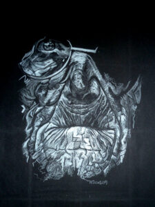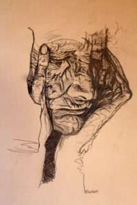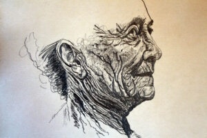 This series is a reflexion on aging while I was looking after elderly relatives, and how one’s parents eventually become one’s children. The wrinkles are a testimony of time passing, I tried to convey their beauty in the drawings and the fragility of the elderly by adding some Lego bricks to the black frames I made.