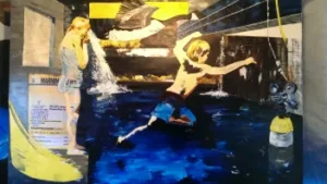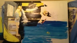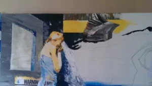 Here is the progression of Water Games, mixed media on canvas, essentially oil.